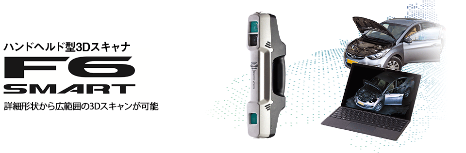F6SMARTは誰でも簡単に対象物の3Dデータを取得できるハンドヘルド型の3Dスキャナです。取得データは対象物の形状を基にリアルタイムで合成処理が行われるため、スキャン中に取得データを確認することが可能です。また、事前に特殊なマーカーの設置やキャリブレーションを行う必要が無いため、現場ですぐにスキャンを開始することが可能です。