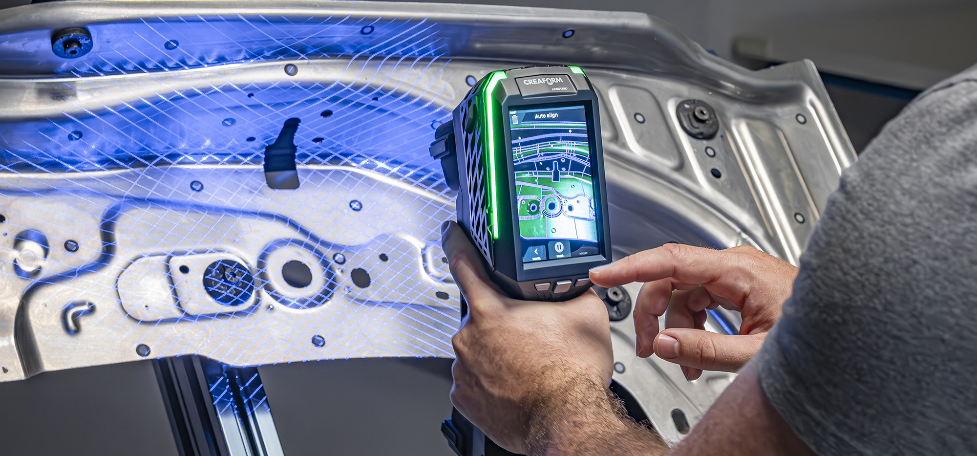 HandySCAN3Dスキャナーは複数のクロスレーザーと自動メッシュ生成機能を備え、セットアップからスキャン、さらにファイル変換までの測定ワークフローの高速化を実現します。
